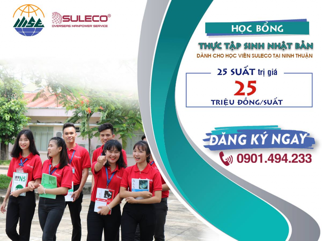 Điều kiện áp dụng: Thực tập sinh đến từ Ninh Thuận đã đậu phỏng vấn tại SULECO trong thời gian từ 15/3-31/10/2019